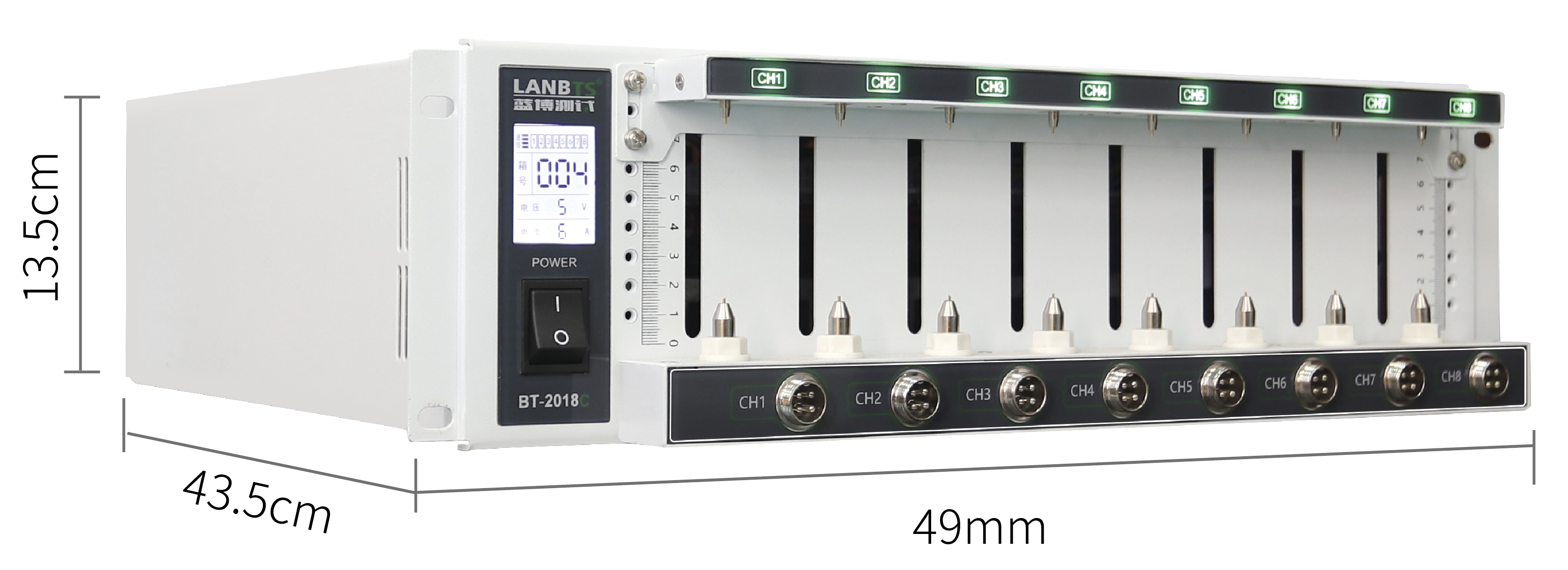 1、前面板既有四線制頂針夾具,也有航空插頭,兩種接口的應(yīng)用能滿足絕大部份電池的接入測(cè)試;