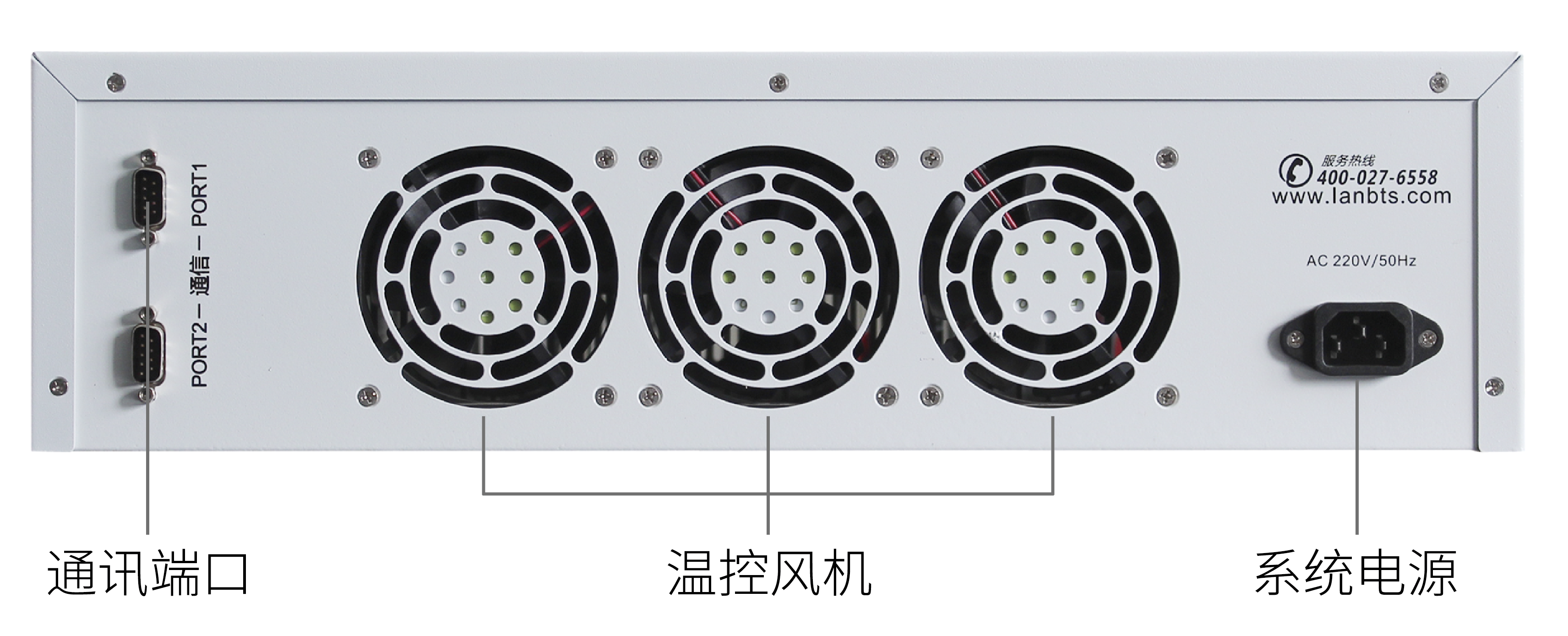 3、電池輸入接口電纜線從設(shè)備前面插入,后面出線的方式,方便與高低溫箱或高溫房配合使用;